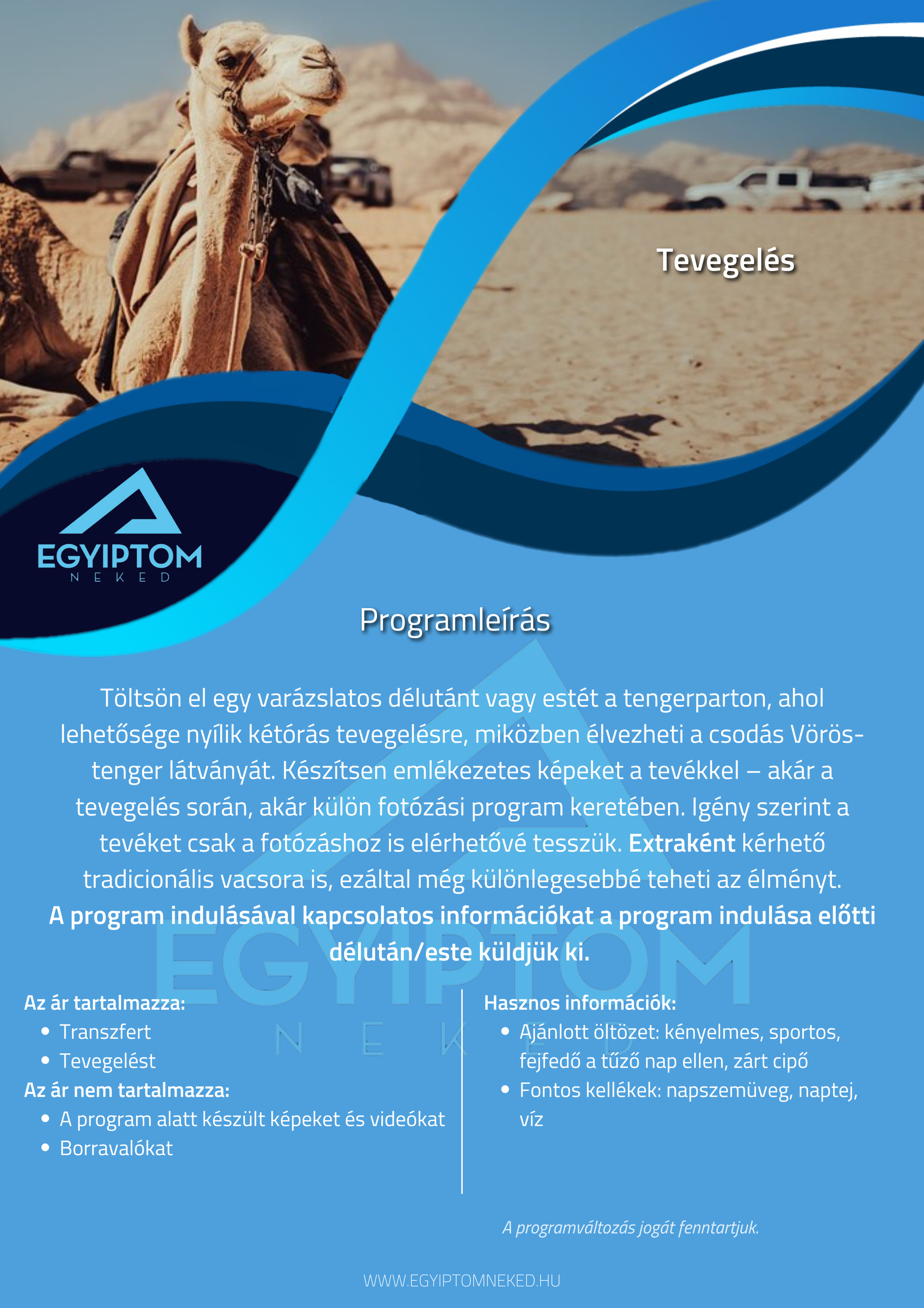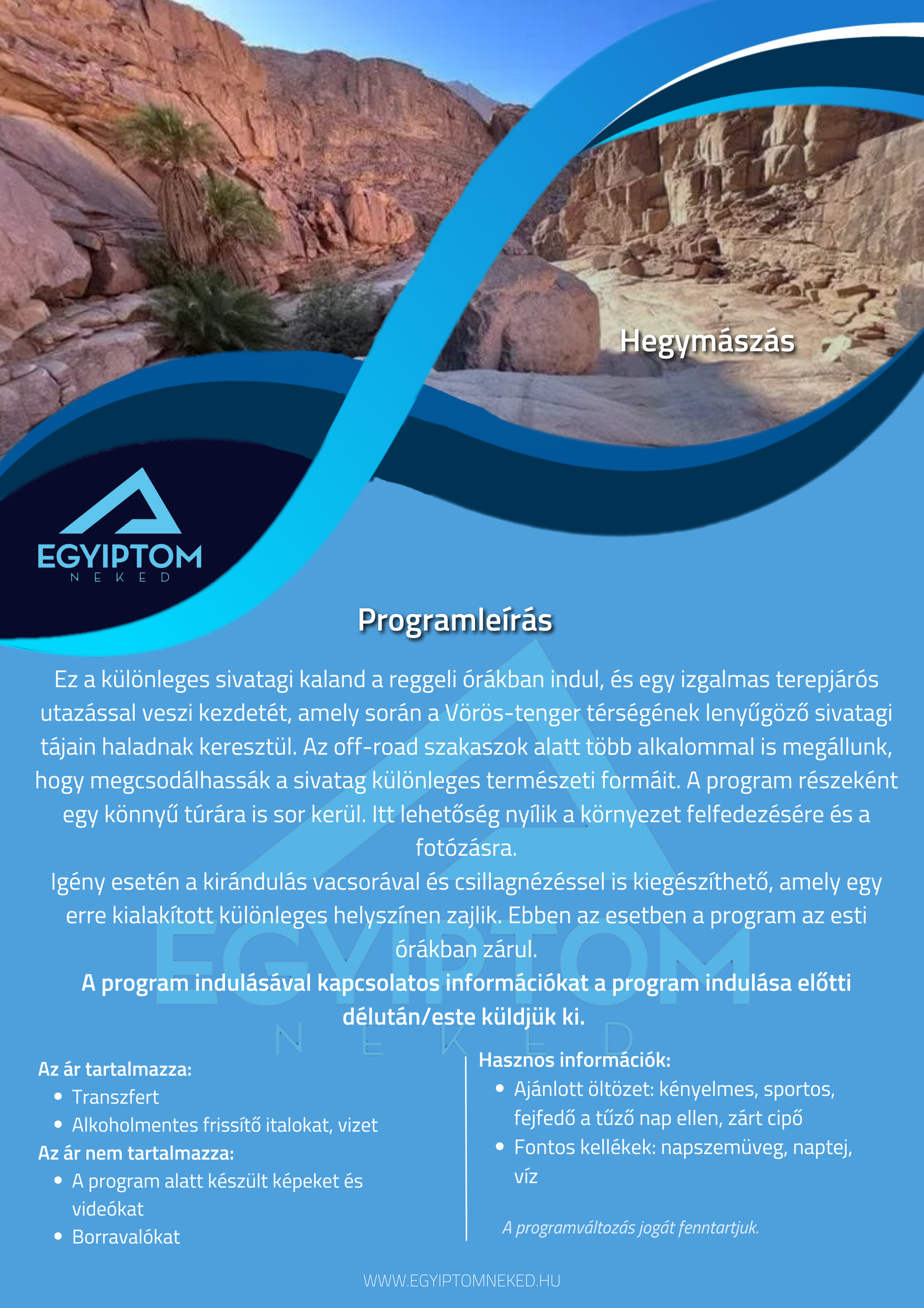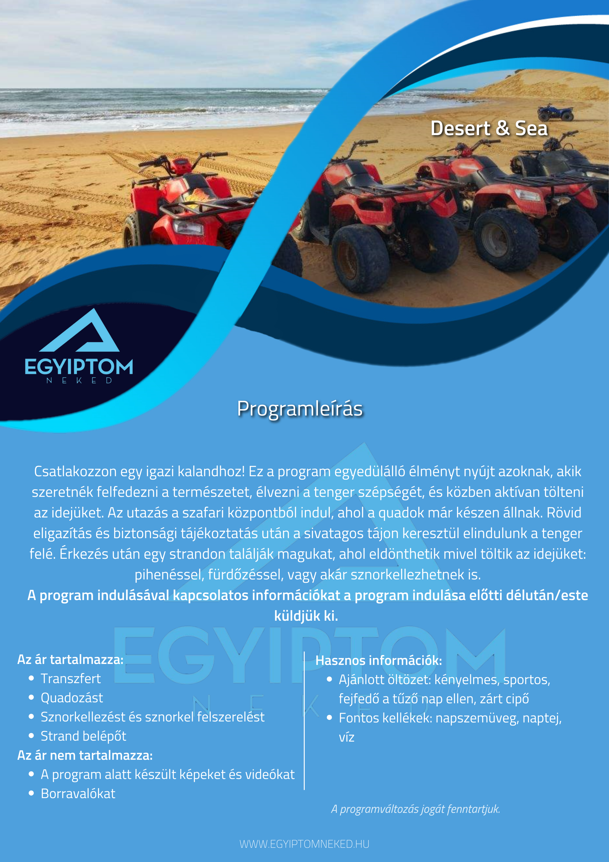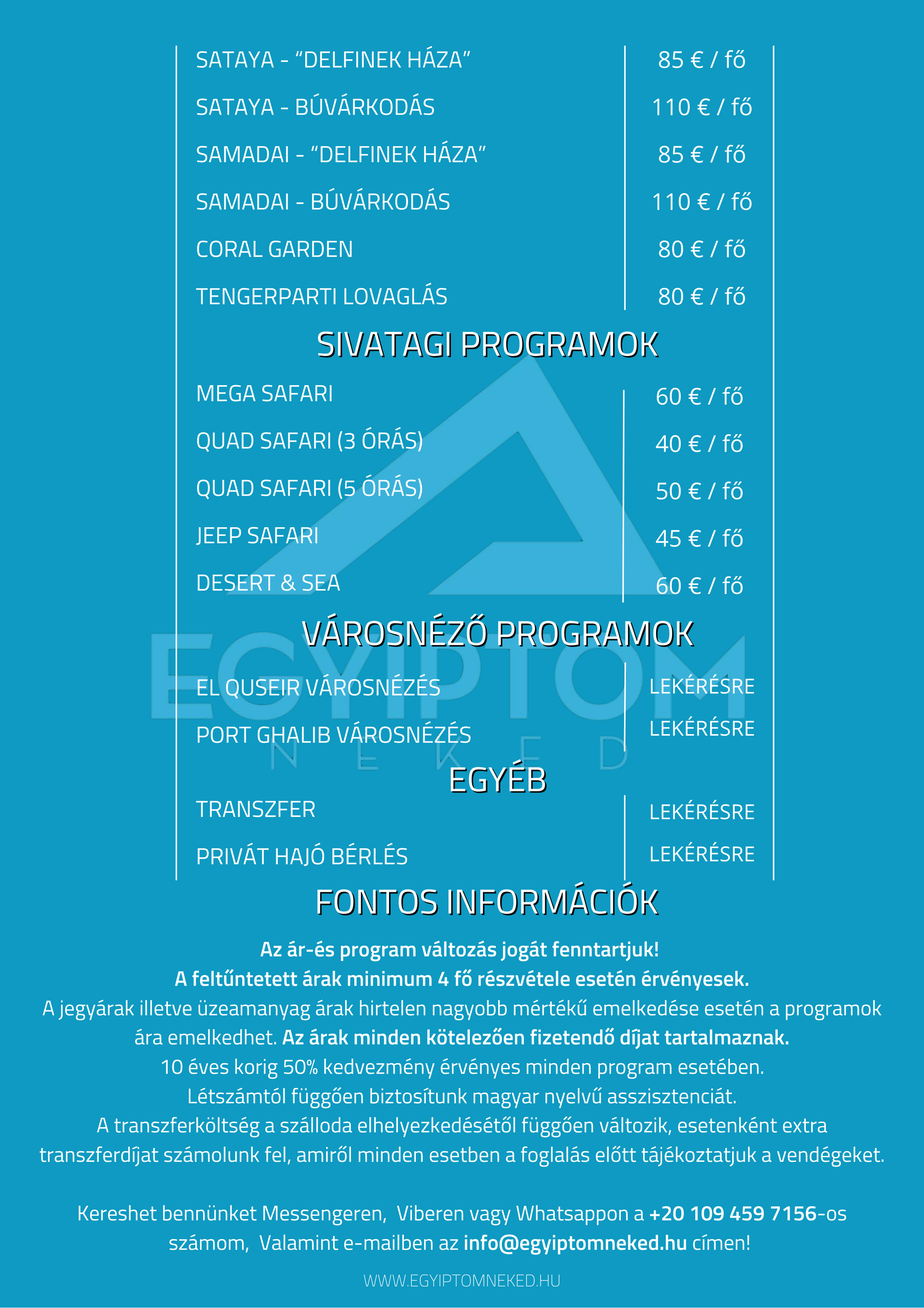 Búvárkodnál? Sivatagi kalandra vágysz? Kultúrális programon szeretnél részt venni? Nincs még hotelfoglalásod? Fordulj hozzánk bizalommal!