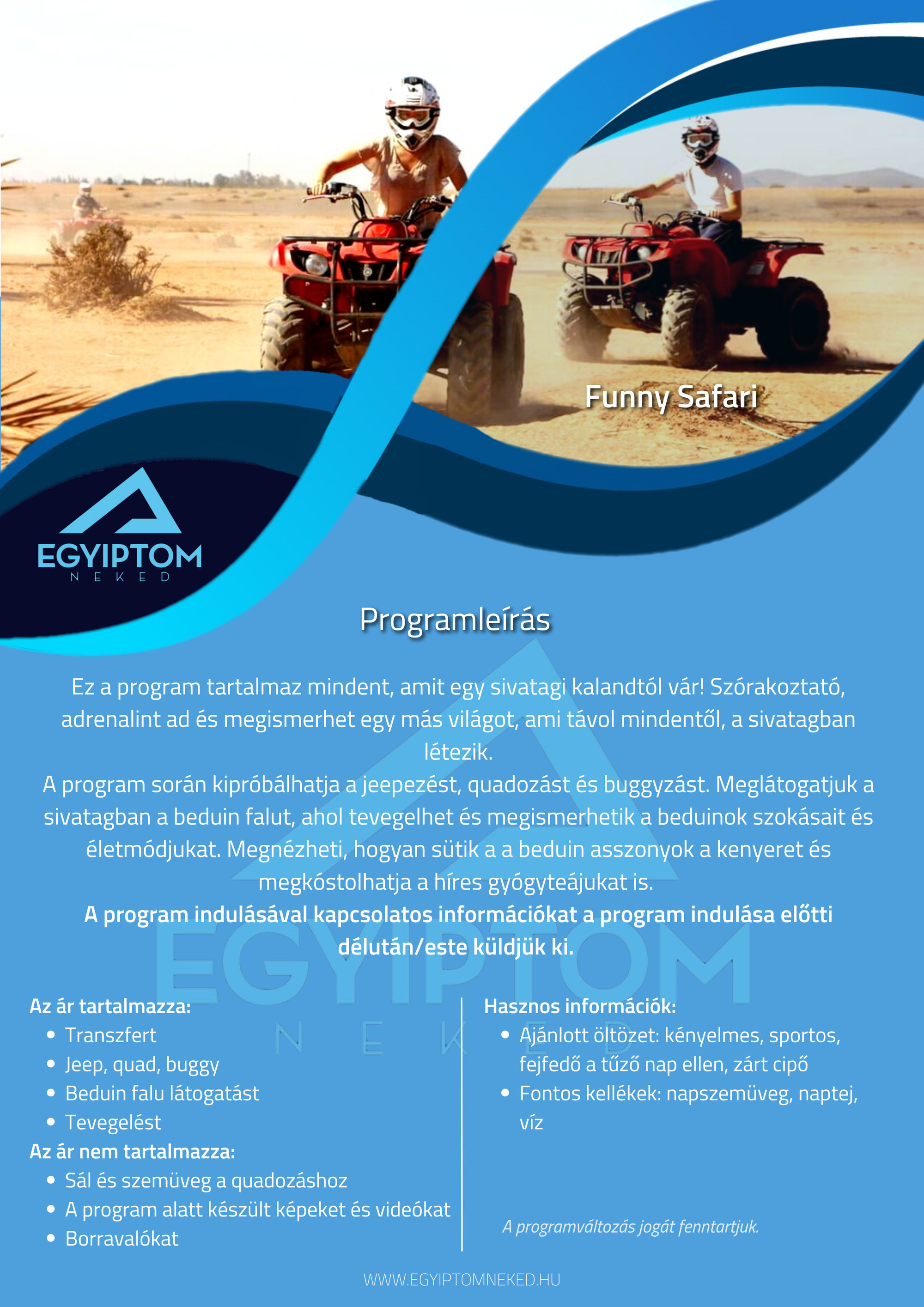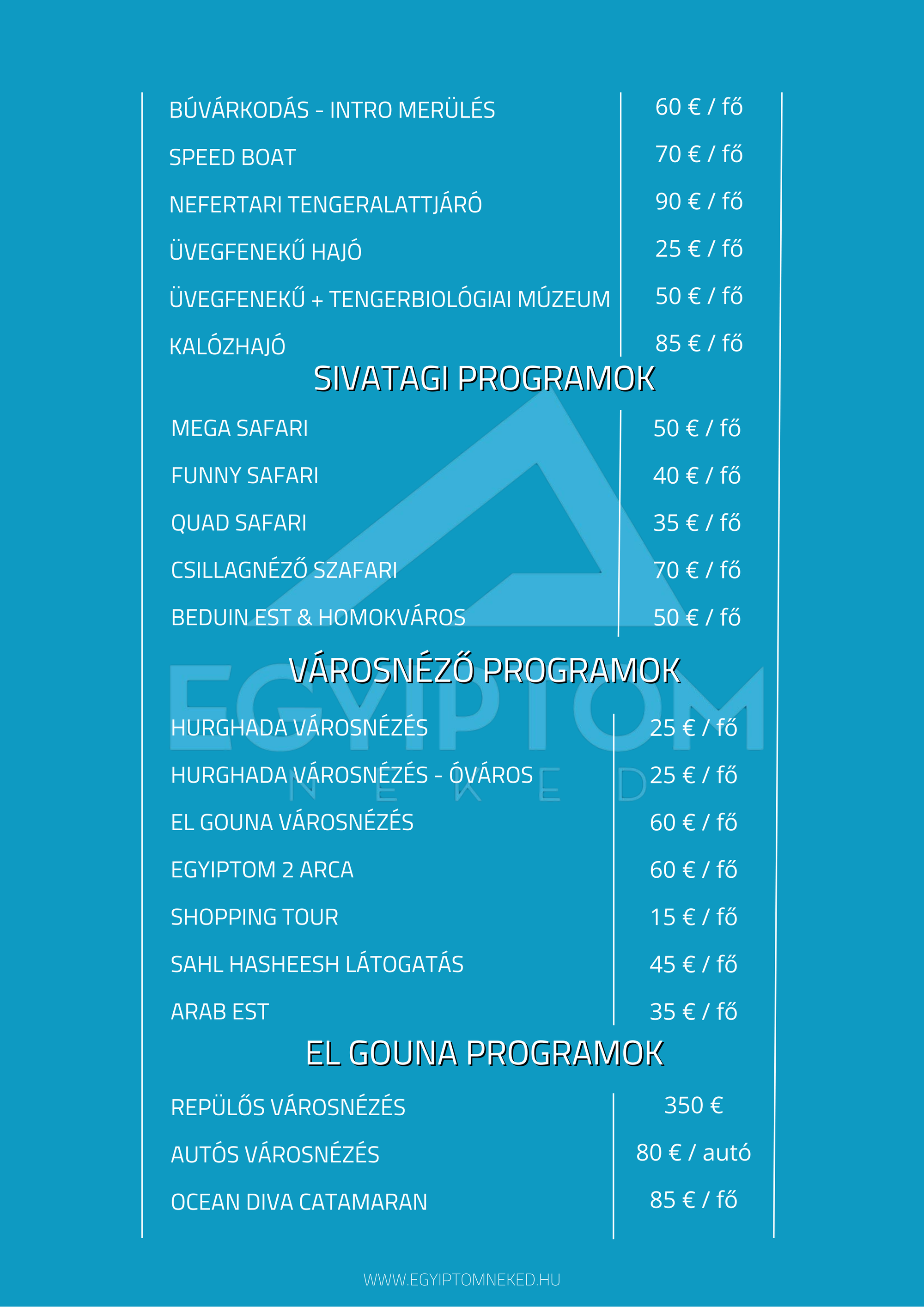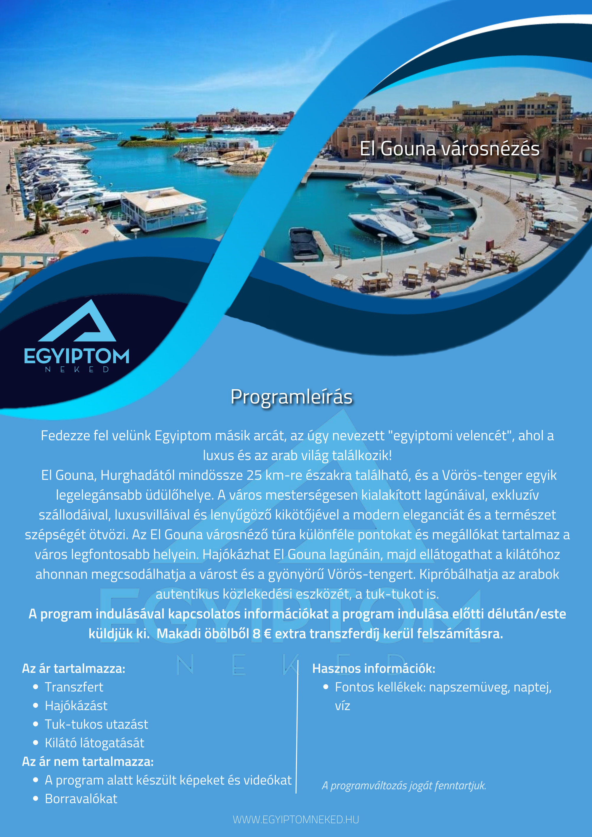 Búvárkodnál? Sivatagi kalandra vágysz? Kultúrális programon szeretnél részt venni? Nincs még hotelfoglalásod? Fordulj hozzánk bizalommal!