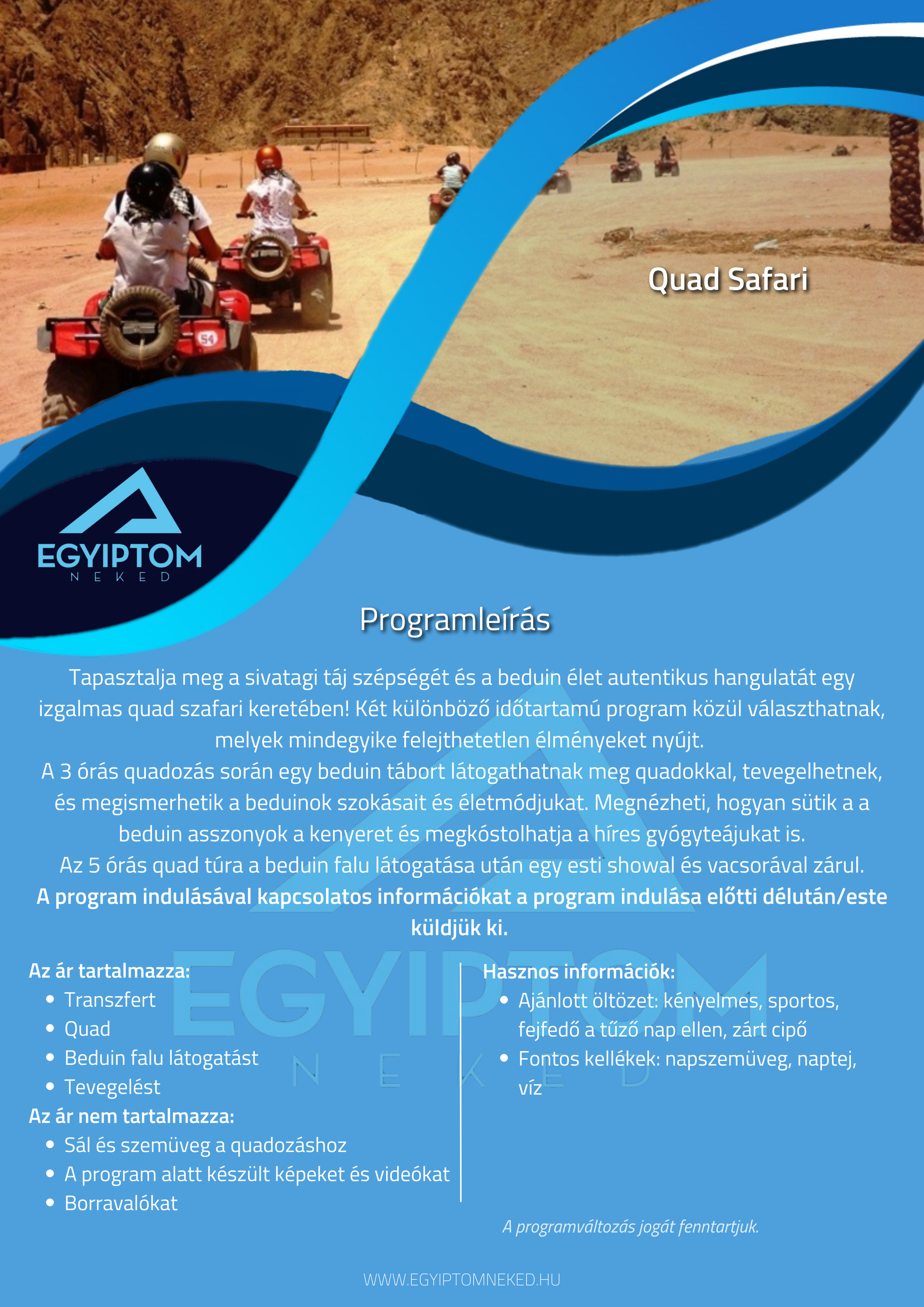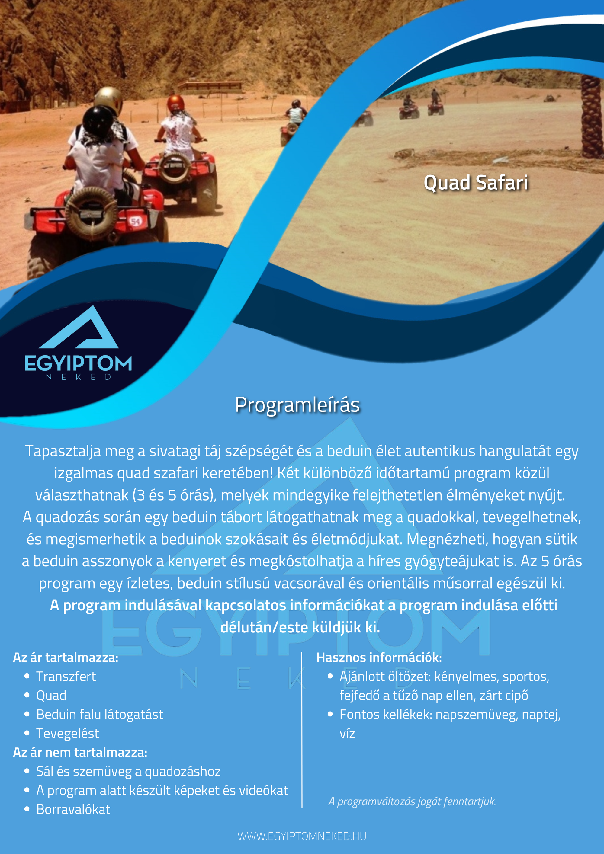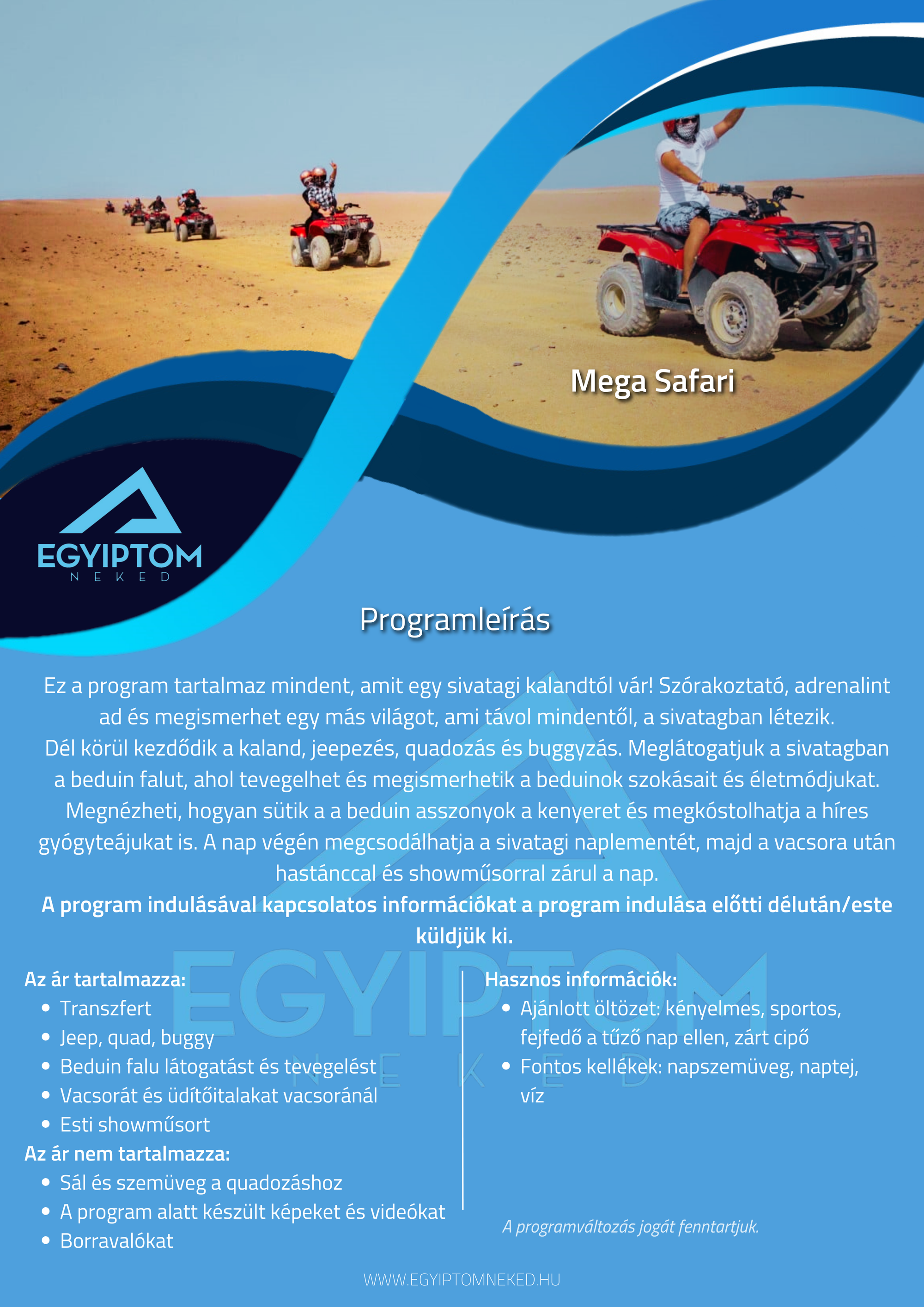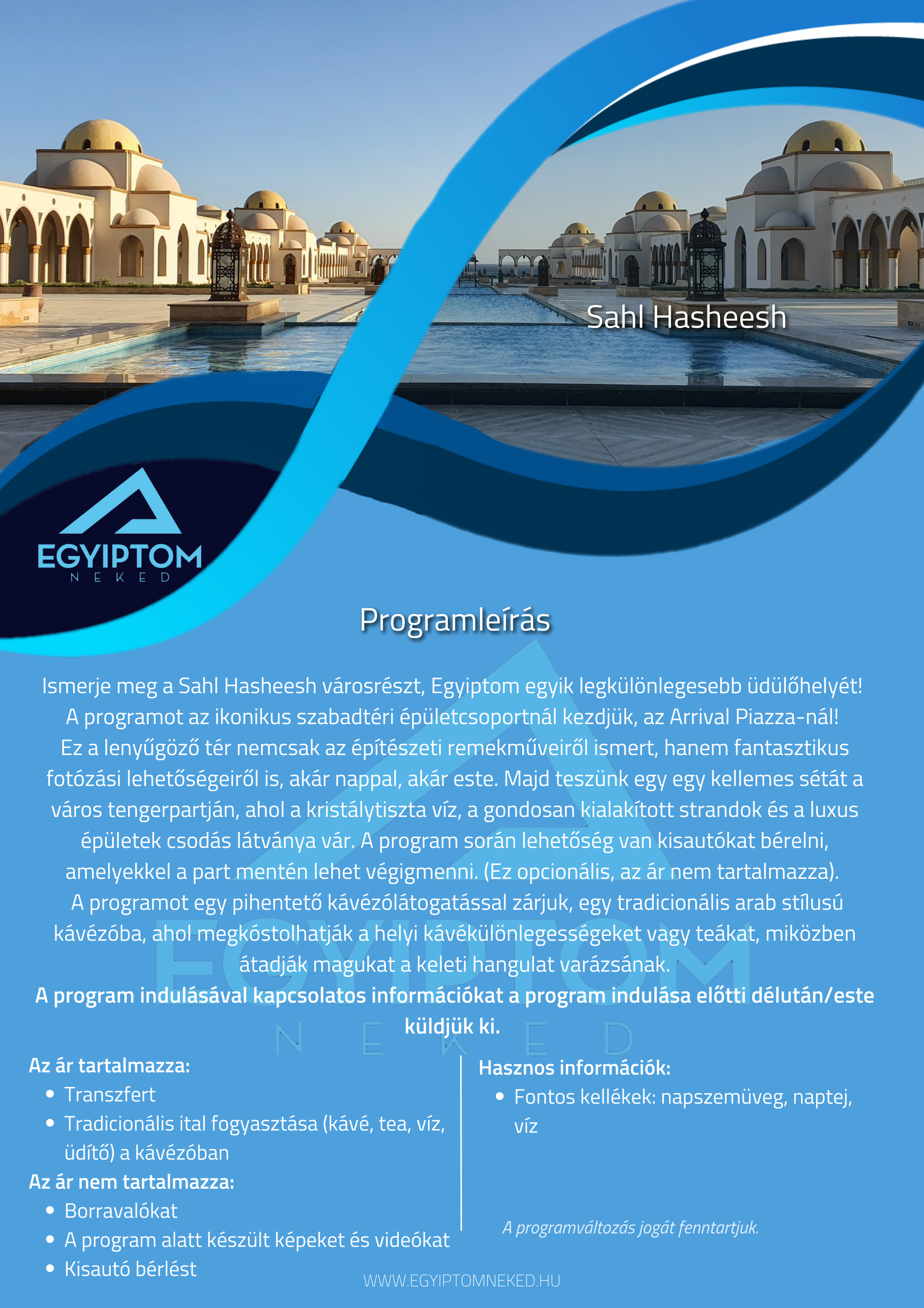 Búvárkodnál? Sivatagi kalandra vágysz? Kultúrális programon szeretnél részt venni? Nincs még hotelfoglalásod? Fordulj hozzánk bizalommal!